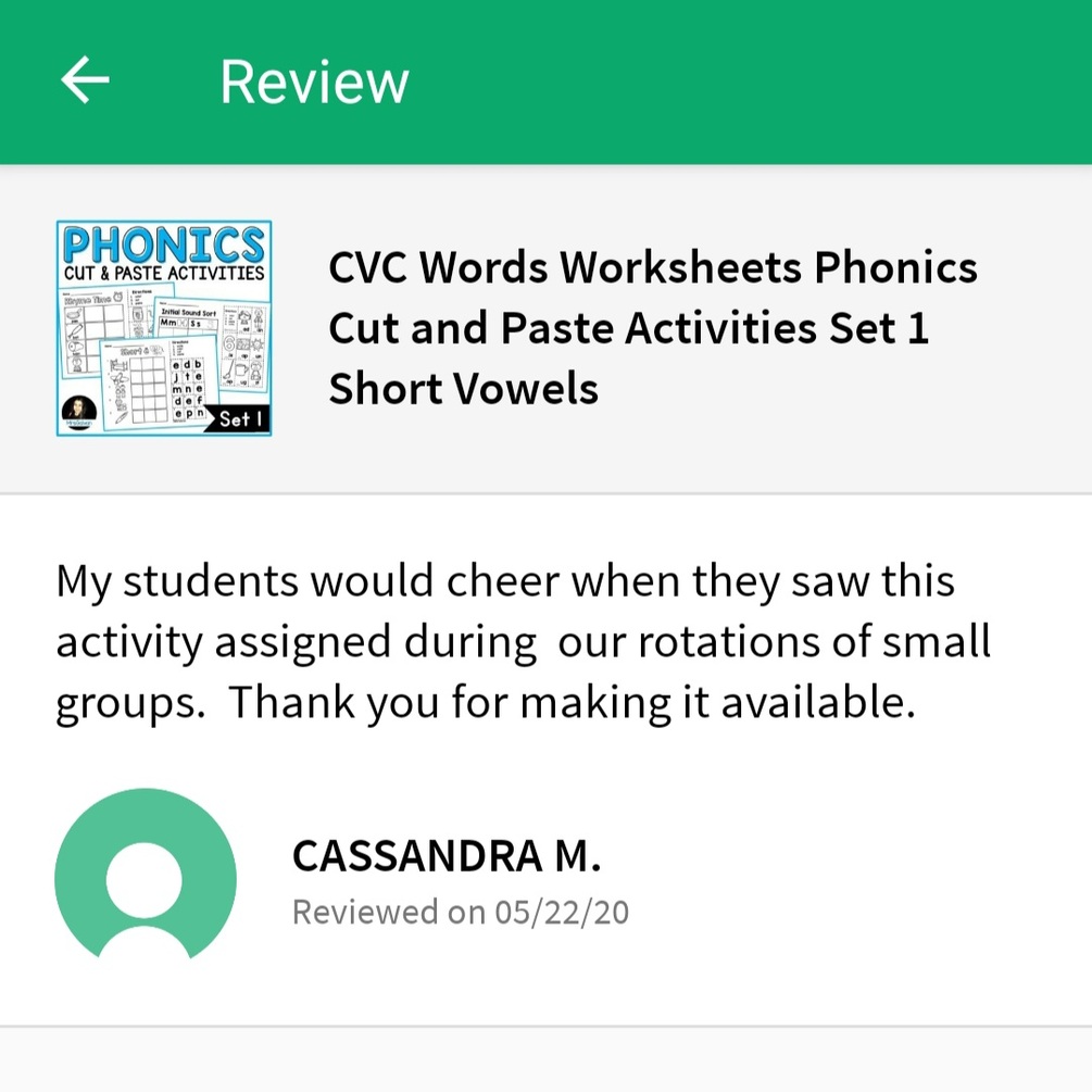 1 Short Vowels page to review vowel sounds and writing